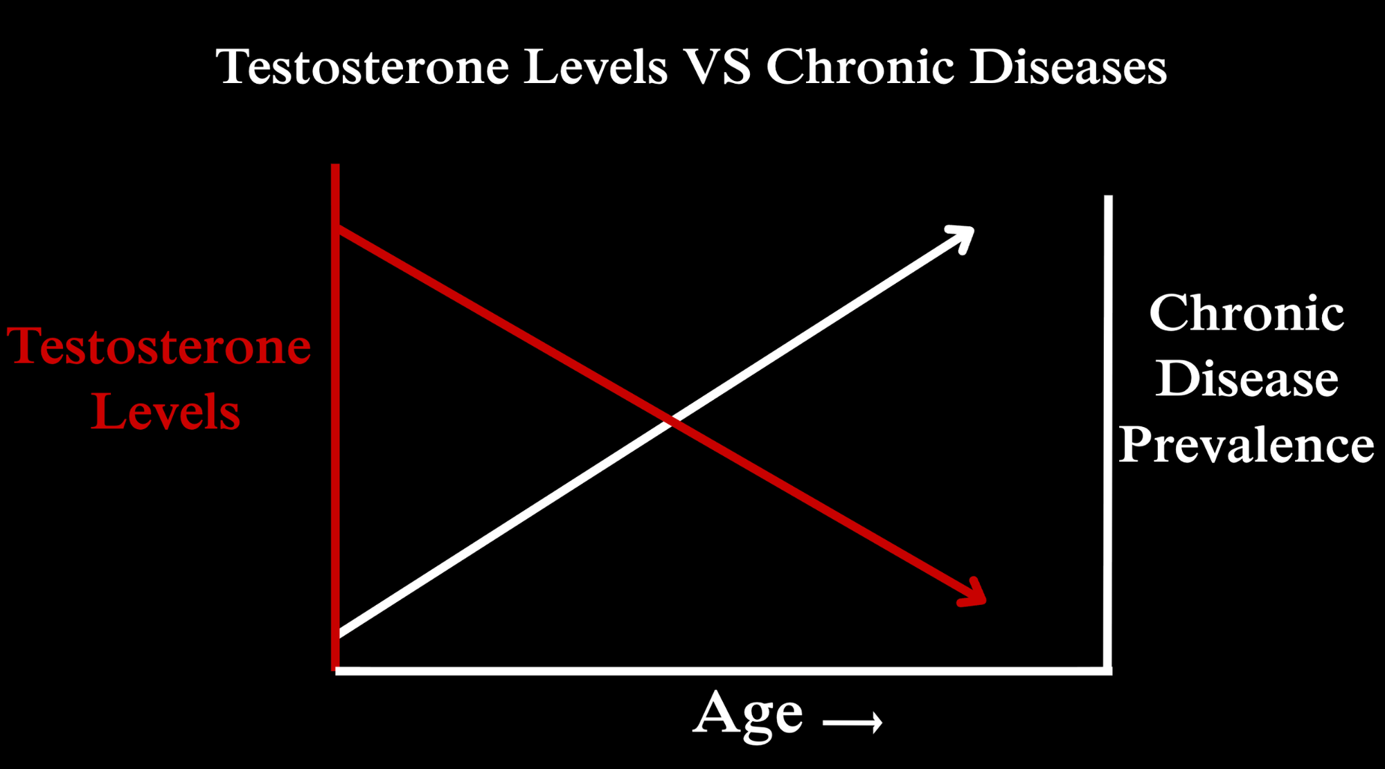 And since chronic diseases tend to crop as people get older, there is also an inverse correlation between testosterone levels and chronic disease with age.