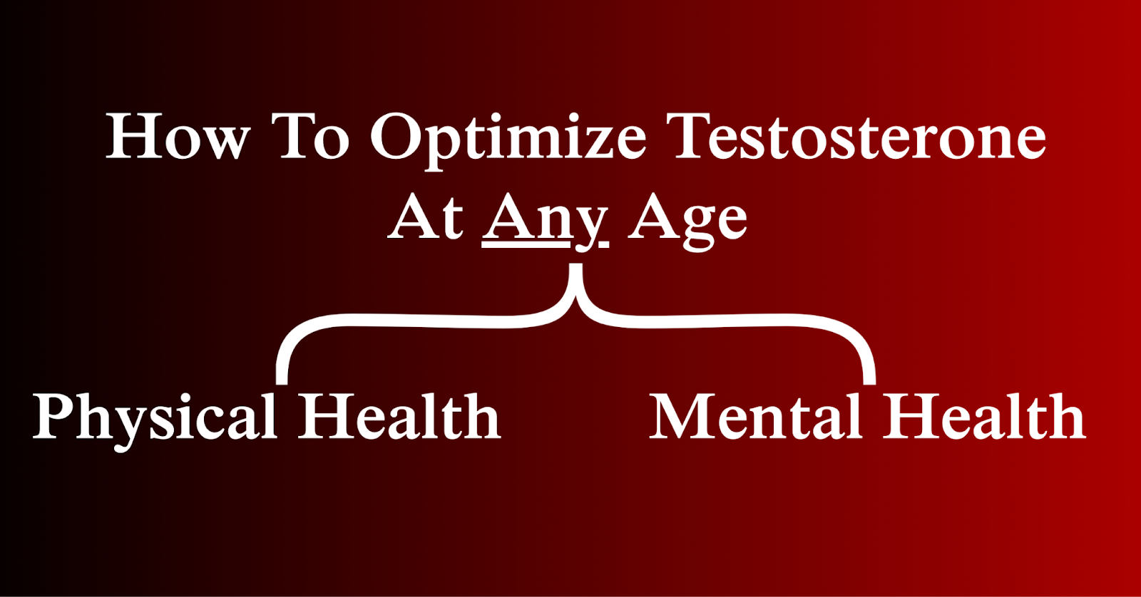 Since your testosterone levels are a byproduct of your general health, optimizing them involves dialing in all aspects of your health, which can be broken down into two subcategories: mental and physical.