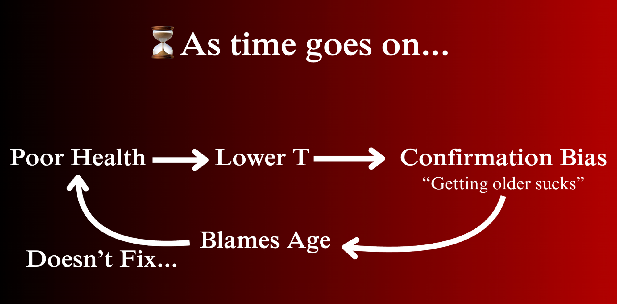 Unless John makes major changes, this cycle will continue repeating itself until the day he dies, which might come sooner for him, because low testosterone is associated with an increased risk of all-cause mortality (7).