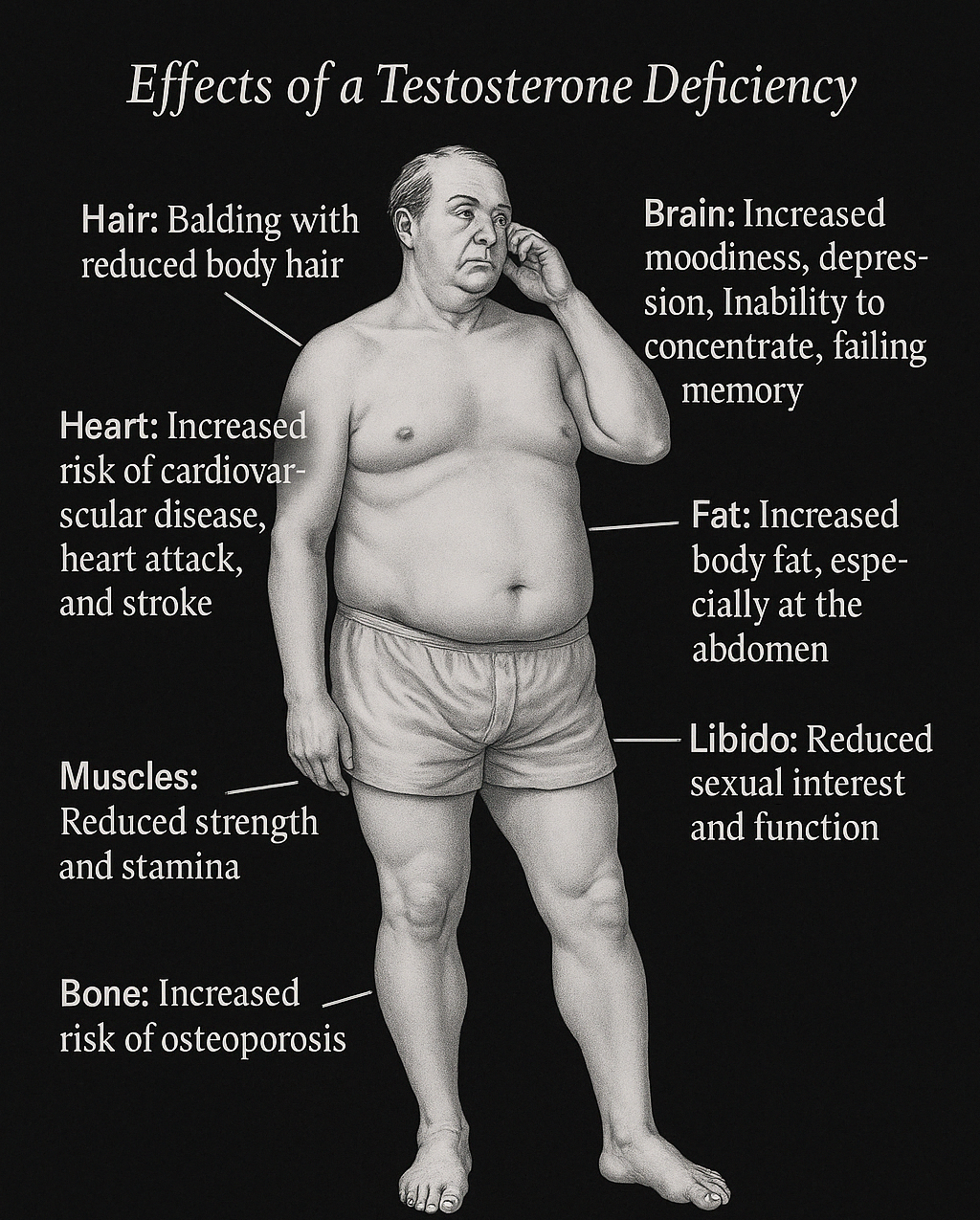 As you can see, testosterone decline is a complex and all-encompassing issue, with reverberating effects on all aspects of a man’s life that extend beyond the individual into society at large.